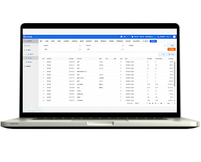材料出入库流水,实时库存可动态查询,多维度检索